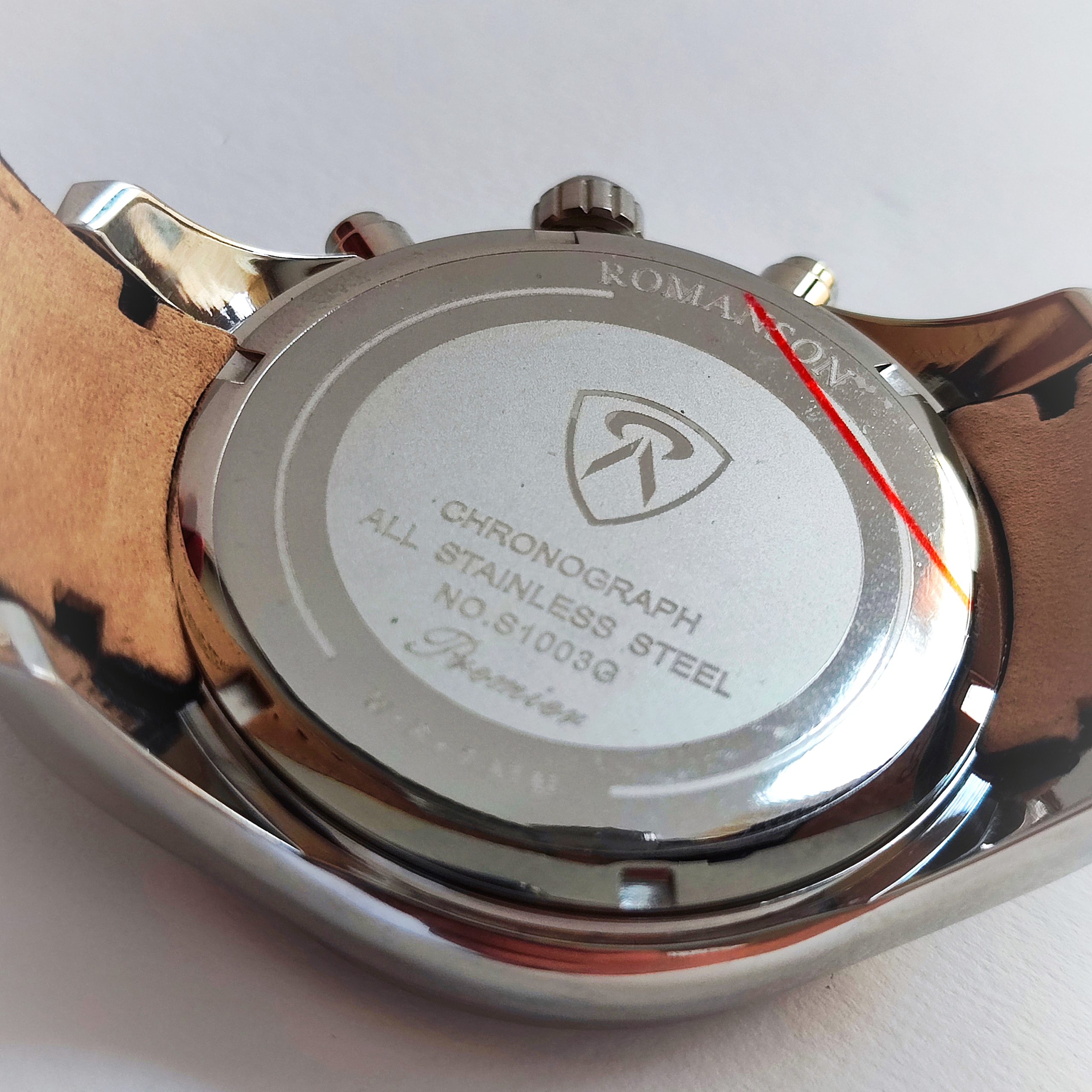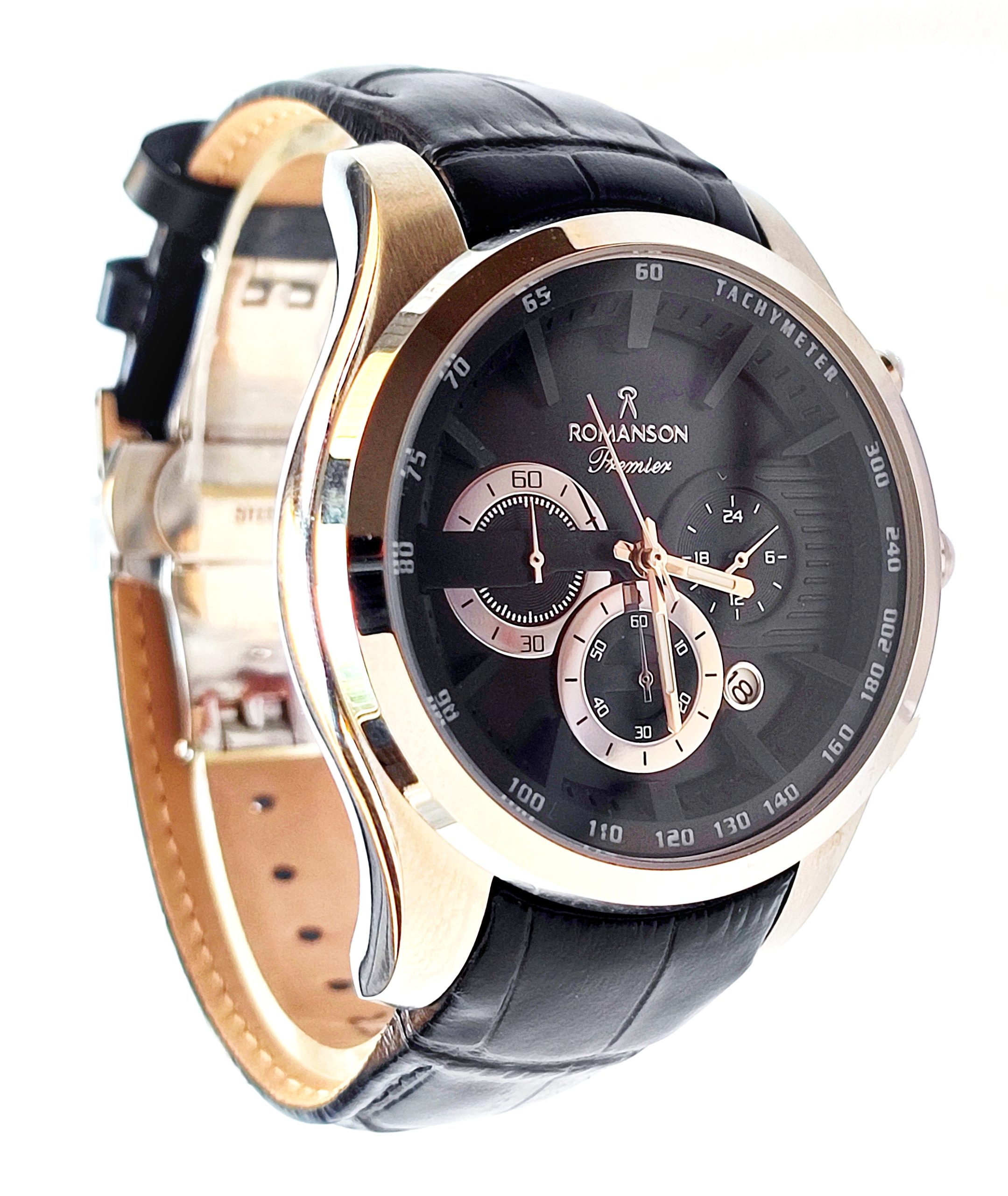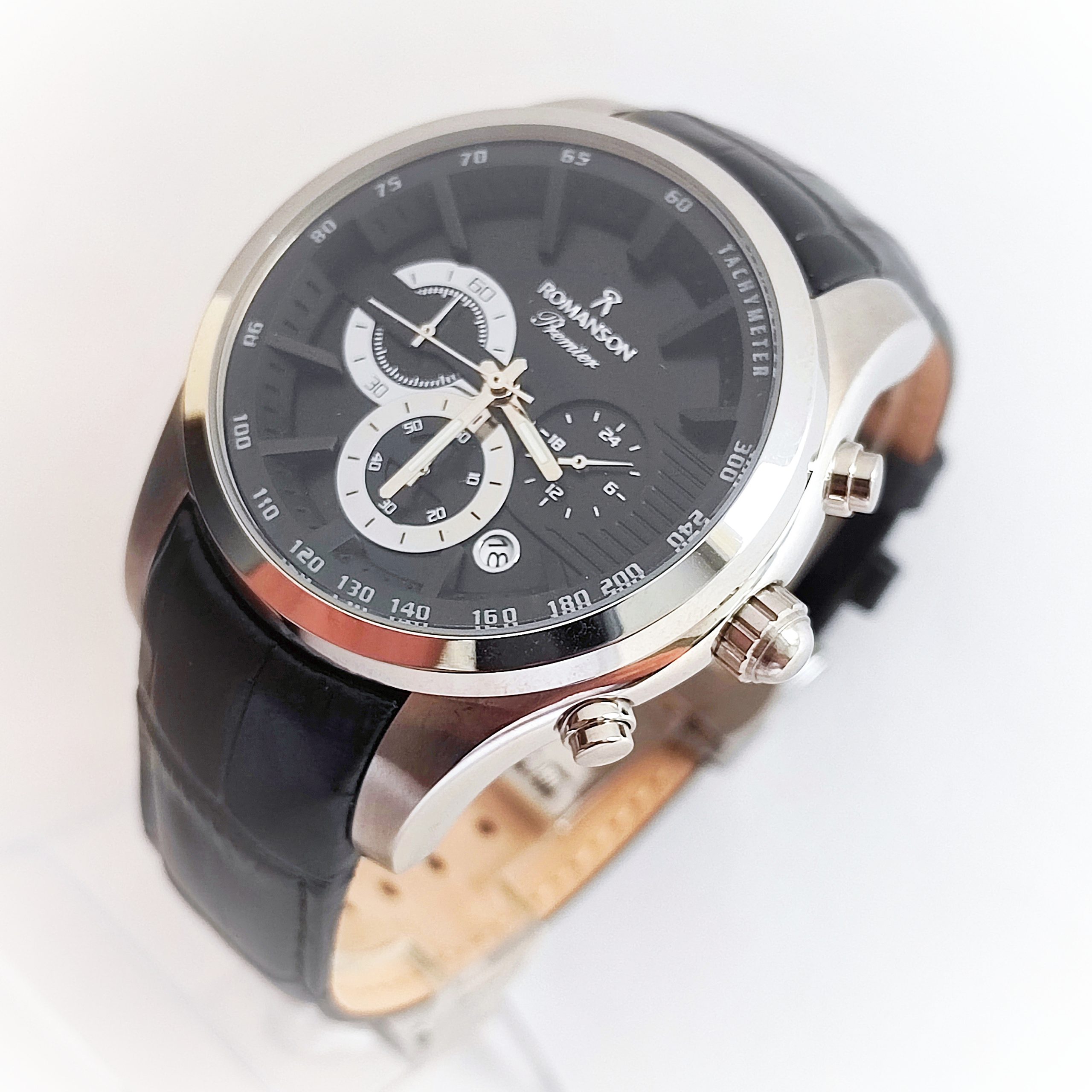 ساعت کرونوگراف رومانسون با موتور میوتا ژاپن، ۴ موتور فعال همزمان، قاب استیل نقرهای درخشان و بند چرم مشکی مرغوب، نه تنها زمان را میسنجد، بلکه تعریف جدیدی از دقت و لوکسبودن ارائه میدهد!